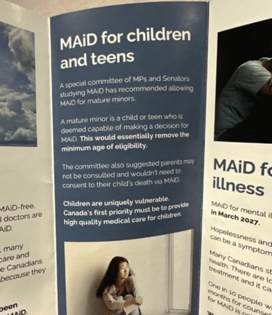 “The committee also suggested parents may not be consulted and wouldn’t need to consent to their child’s death via MAiD.”(29)