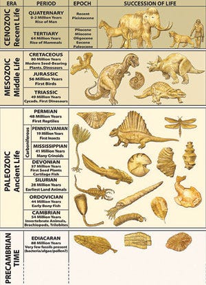 So, if carbon dating cannot be used to date the earth, what can be? Well, mostly the fossil record and the rock strata, organised into a geologic column based on gradualism and a complete absence of catastrophes. Something like this.