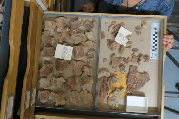 Remarkable, really. Once the bones and fossils had been labelled ‘dinosaurs’, others were recovered, around the world. Not by regular people, mind, but by government entities, museums and authorised fossil hunters. My impression is that a pair of petulant manchilds were indulged – they were the pathfinding useful idiots of palaeontology, accorded carte blanche. And, once they had laid the groundwork, others seemingly built on it.