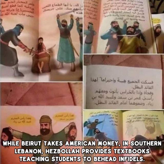 Divide and conquer, you see. The Americans themselves proposed training and financing a force of 5,000 PLO ‘commandos’ in the West Bank – this would be the same PLO responsible for Intifadas and scores of suicide bombings which, by any metric, were terrorist acts.(18) And these would be the same Americans who fund the Lebanese Army, knowing that the money and equipment they supply is used to uncover Israeli spy cells attempting to gather intelligence on Hezbollah and Hamas.(19) And also produce textbooks like this.